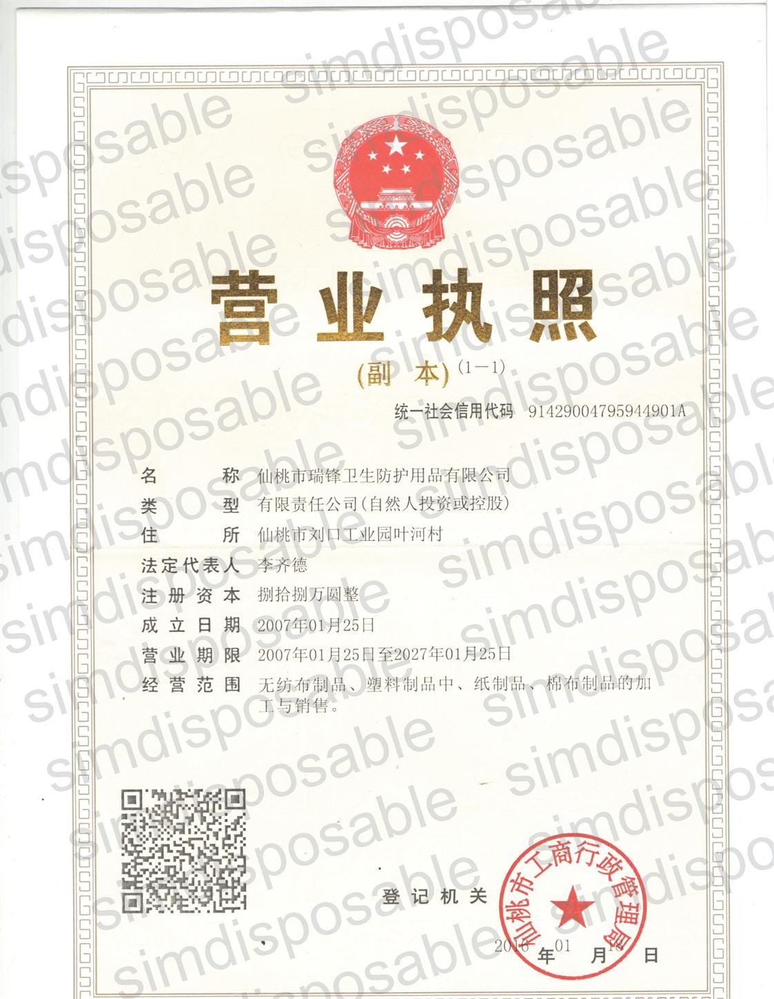仙桃市瑞鋒衛(wèi)生防護(hù)用品有限公司(Sword Xiantao Disposable Protective Products Factory)位于“江漢明珠”----湖北省仙桃市劉口工業(yè)園,西領(lǐng)古城荊州,滬蓉高速公路、318國(guó)道和滬蓉鐵路橫貫全境,到武漢港100公里,交通便利,地理位置優(yōu)越。